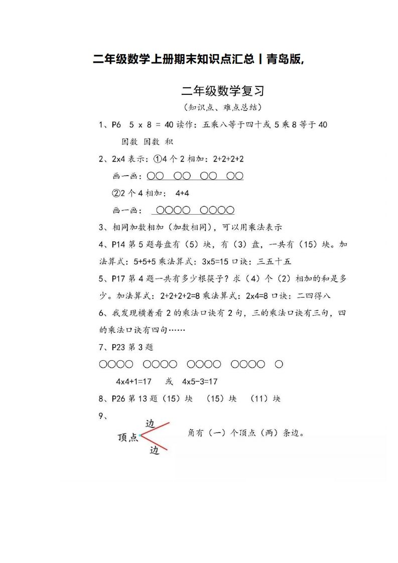 二上青岛版数学重点知识点预习