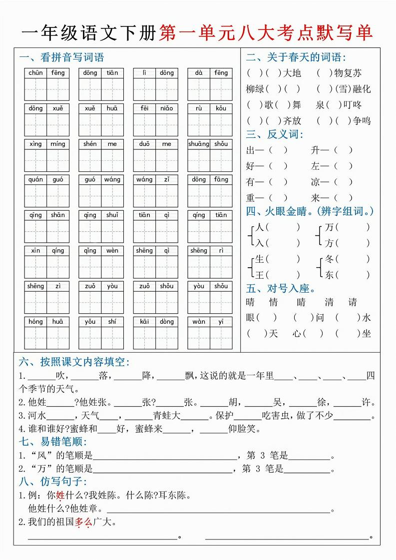 【25学年-期末复习常考七大重点题型专项练习29页】一下语文