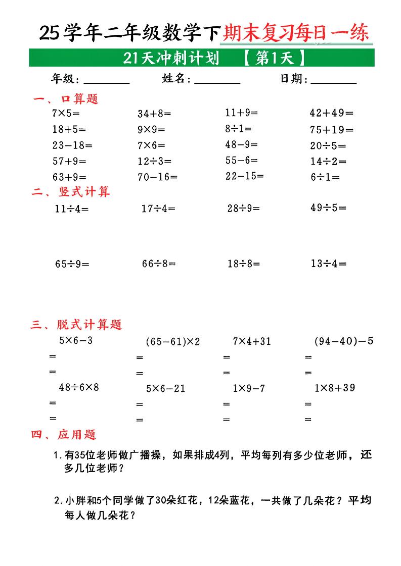 二下青岛54版数学期末拔尖测试卷1(4页)