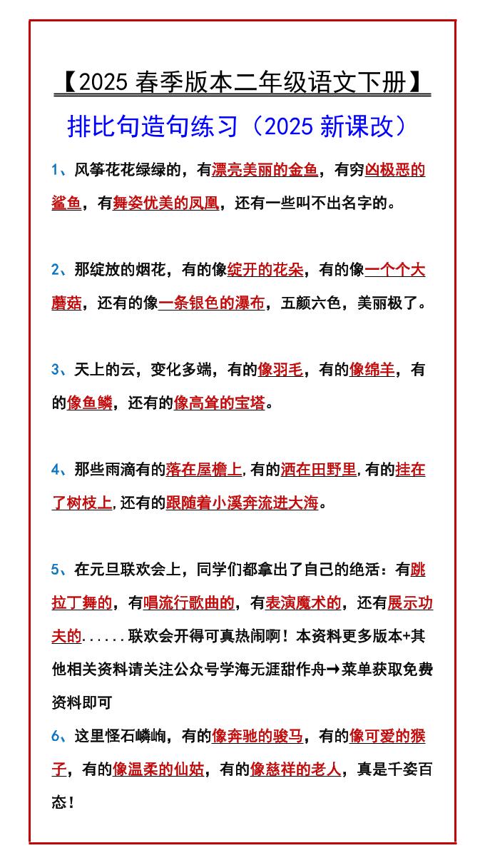 2025春新版【二年级语文下册】 看图写话:描写春天景物