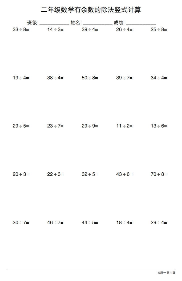 二下数学《有余数的除法》计算专项练习30套(30页)