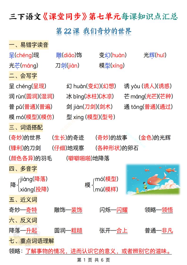 ★三下语文《课堂同步》第七单元每课知识点汇总_水印_扫描版