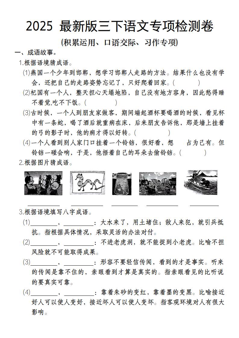【语文】2025最新版三下语文专项检测卷(无答案)