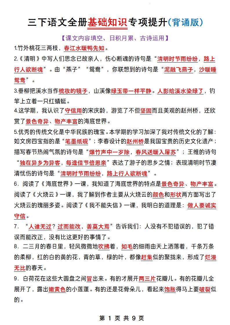 【语文】三下语文全册基础知识专项提升(背诵版)