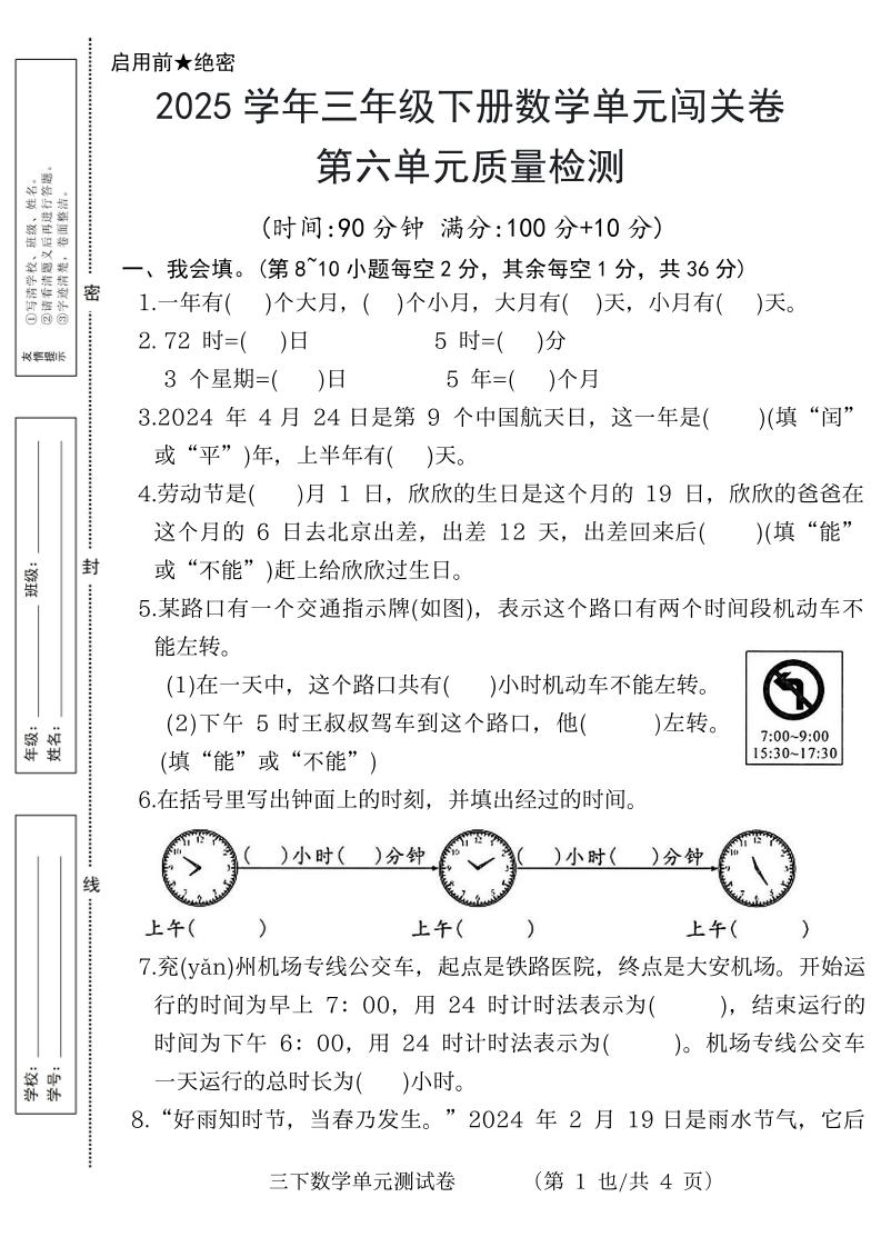 三下数学《年月日》核心知识点汇总+计算技巧+六大考点必刷题(练习+答案24页)