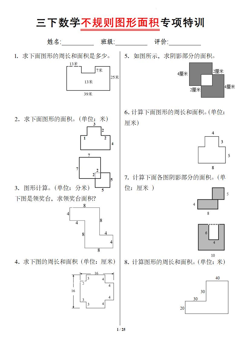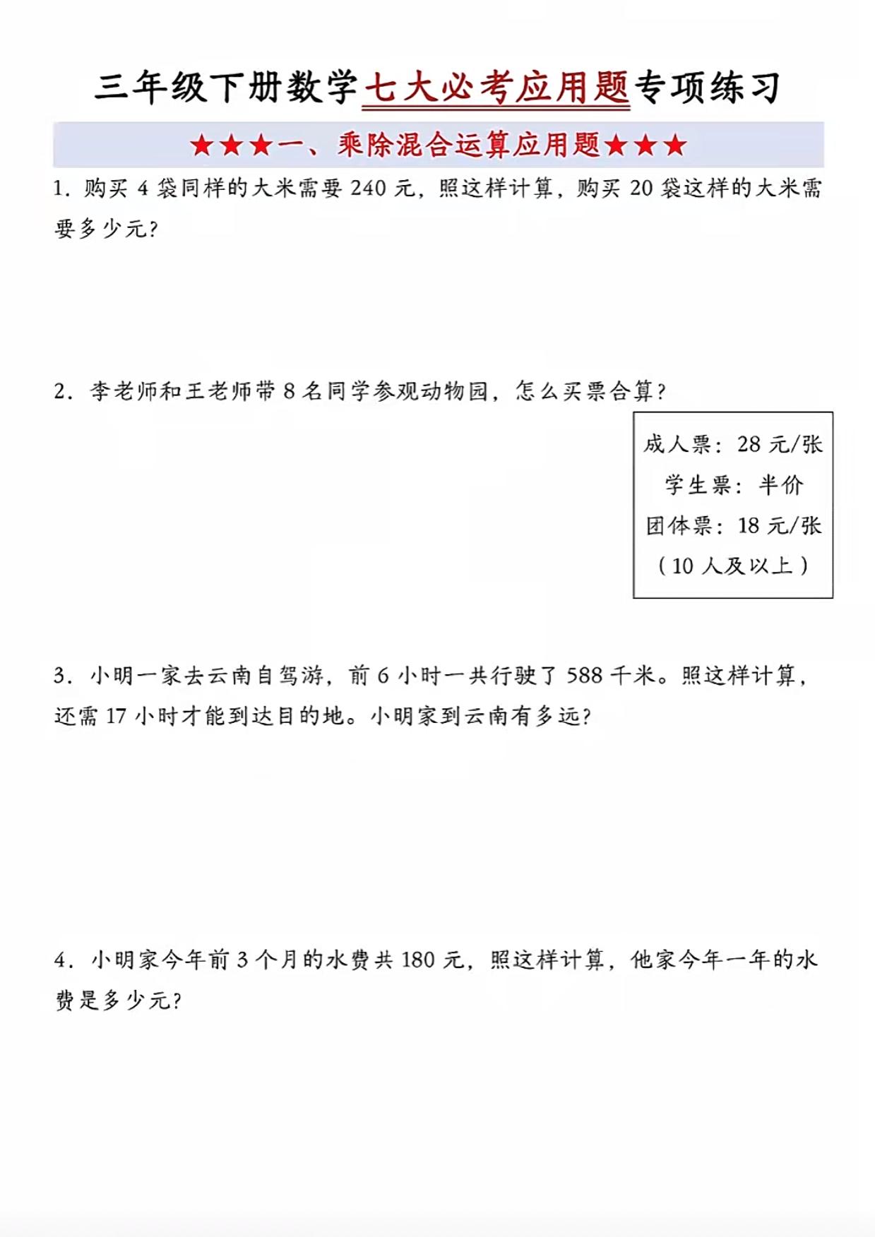 三下数学期末复习五大专项应用题训练(含答案解析66页)
