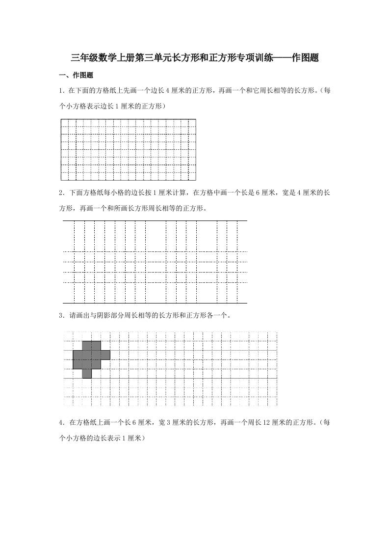 【题型专项特训】三年级数学上册第三单元长方形和正方形专项训练——作图题(苏教版,含答案)