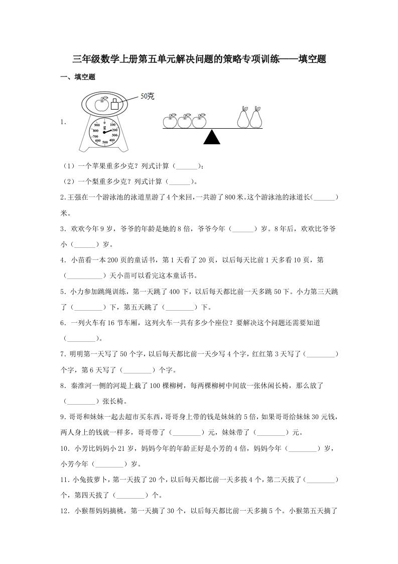 【题型专项特训】三年级数学上册第五单元解决问题的策略专项训练——填空题(苏教版,含答案)
