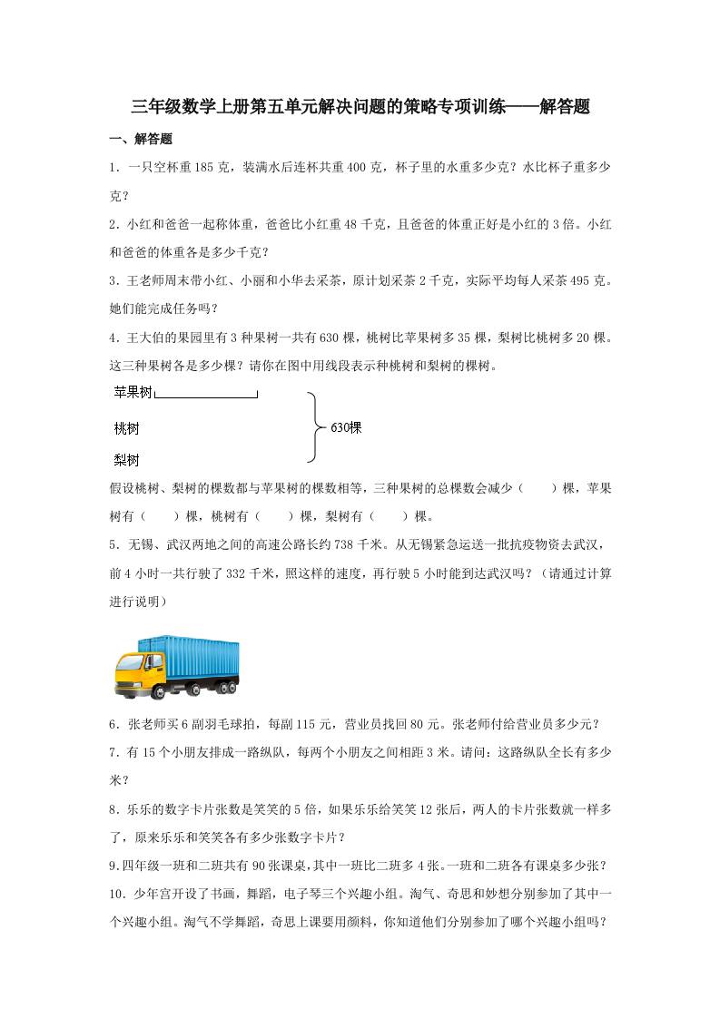 【题型专项特训】三年级数学上册第五单元解决问题的策略专项训练——解答题(苏教版,含答案)