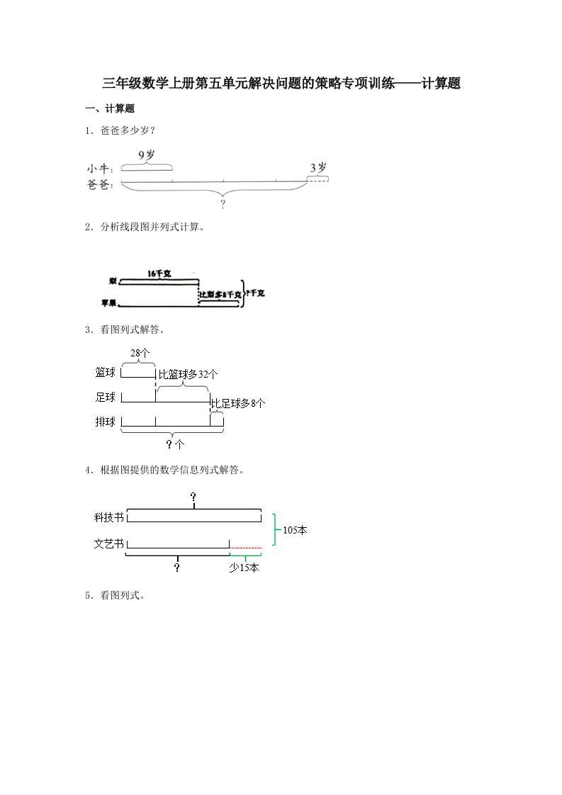【题型专项特训】三年级数学上册第五单元解决问题的策略专项训练——计算题(苏教版,含答案)