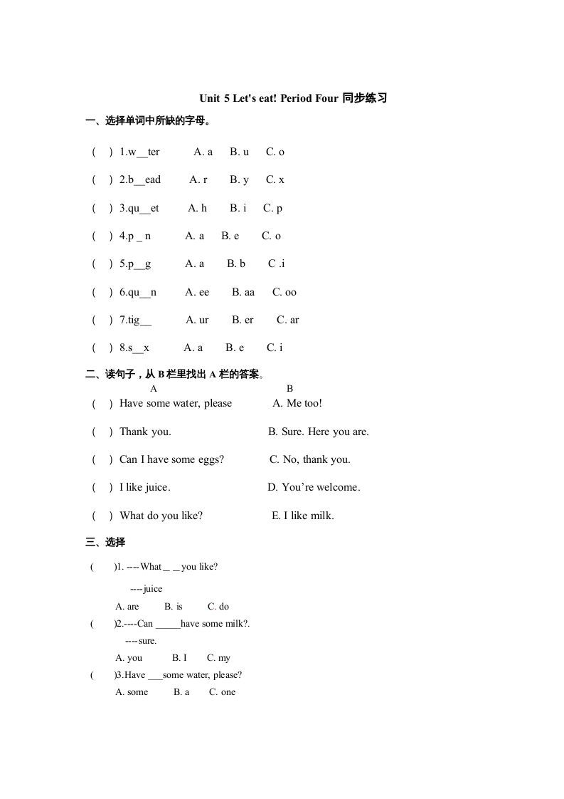 三年级英语上册Unit5Let\'seatBlet\'stalk练习(人教PEP)