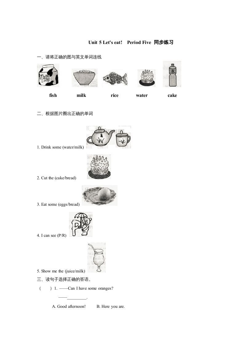 三年级英语上册课时测评unit5Let\'seat-PartA练习及答案(3)(人教PEP)