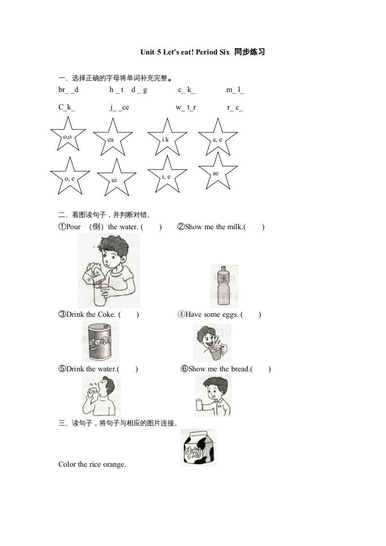 三年级英语上册Unit5Let\'seatPALettersandsounds练习(人教PEP)