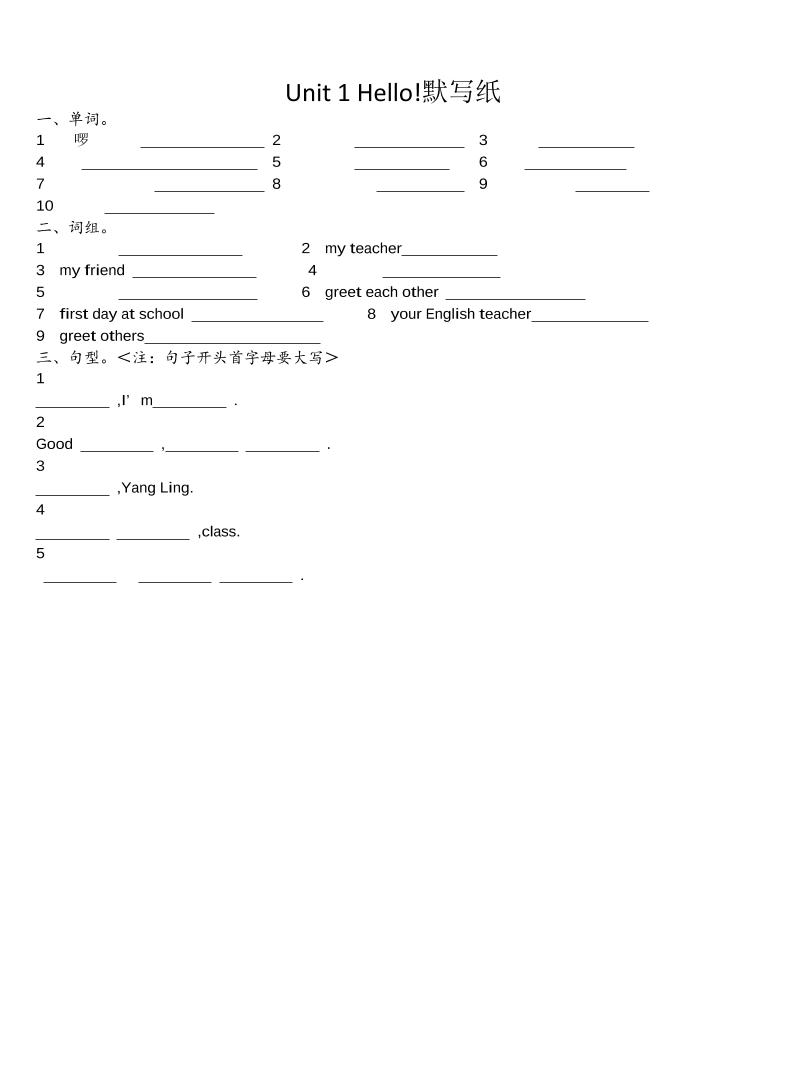24秋译林三上英语Unit1一8默写纸