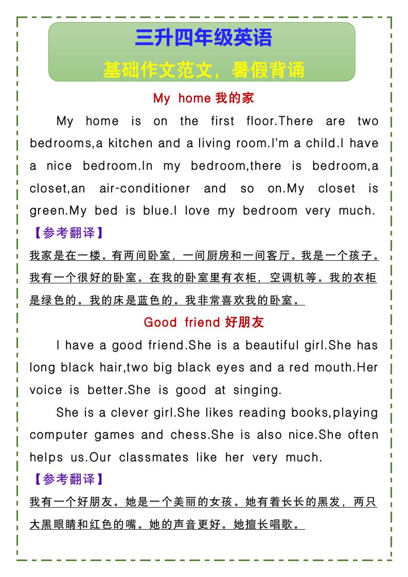 三升四年级英语基础作文范文,暑假背诵-四上英语