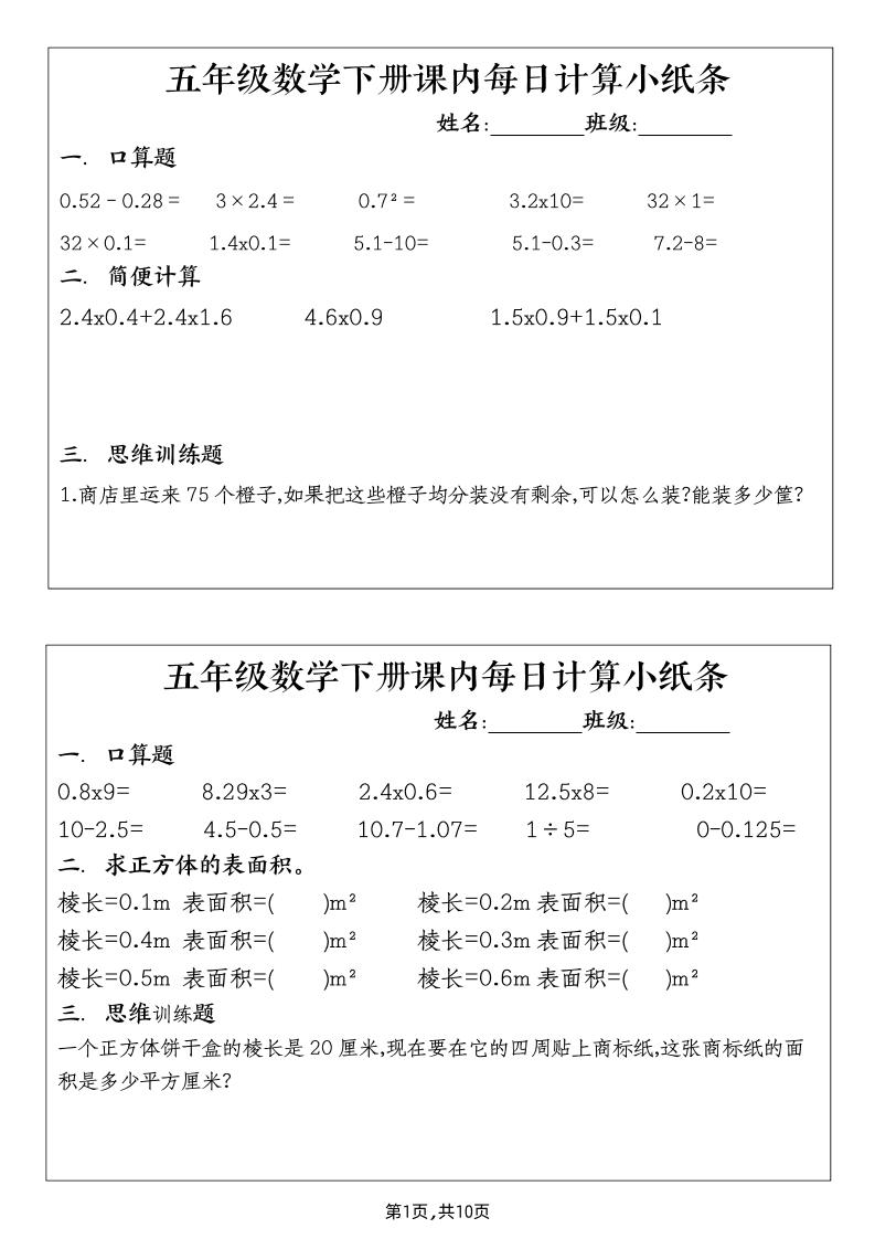 《数学每日计算小纸条》(通用版)