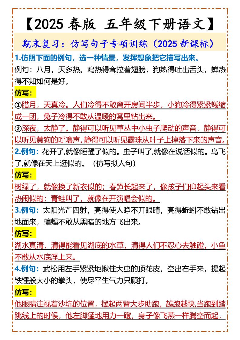 2025春新版【五年级下册语文】仿写句子专项训练