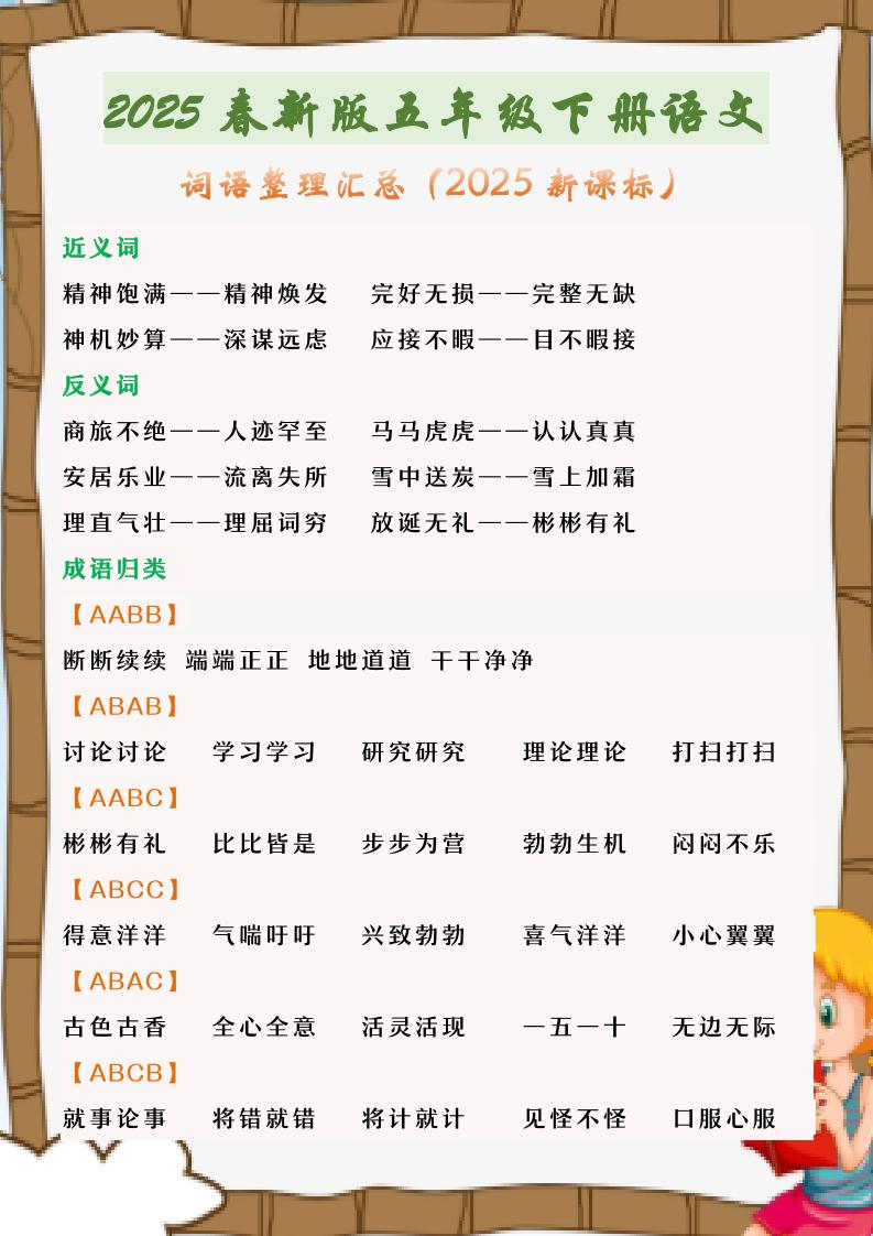 2025春新版五年级下册语文词语整理汇总