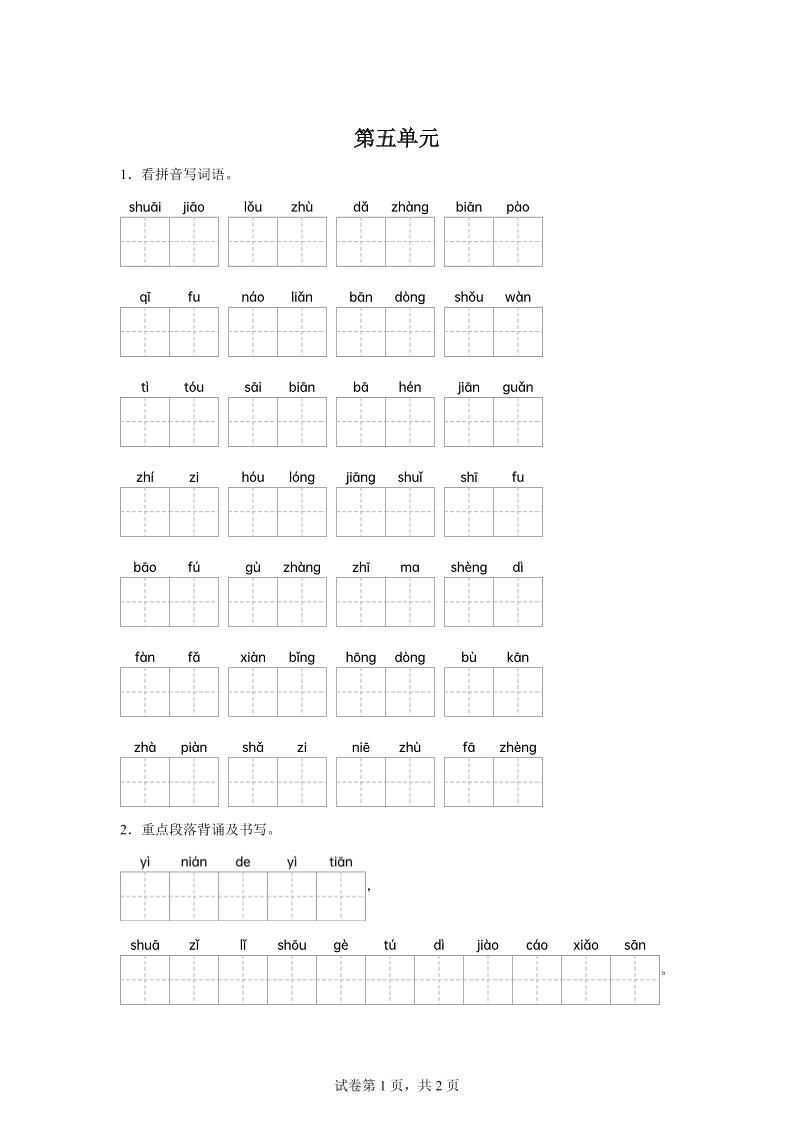 统编版语文五年级下册第五单元课文生字复习和重点语段默写