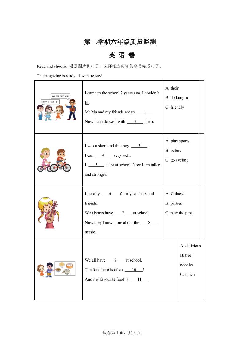 【期末毕业试卷情境题自测卷(含答案)】六下语文