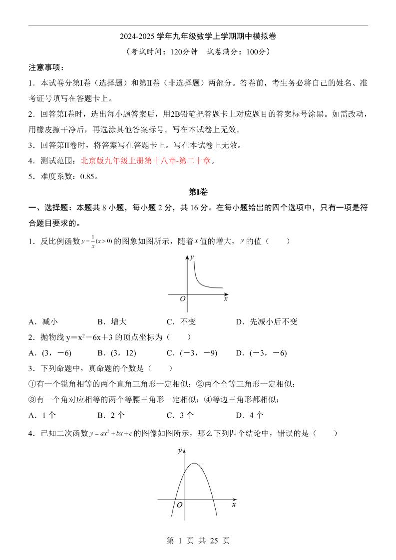 2025-2026学年连云港九年级(上)第一次月考试卷 数学 押题模拟试卷2