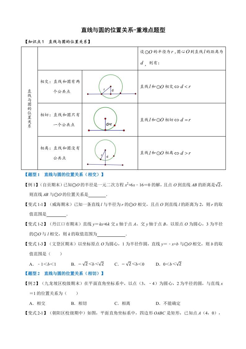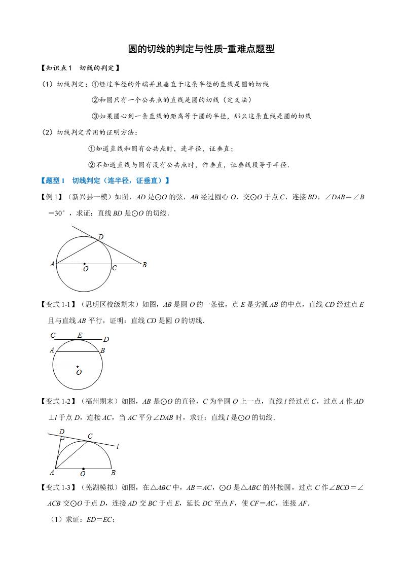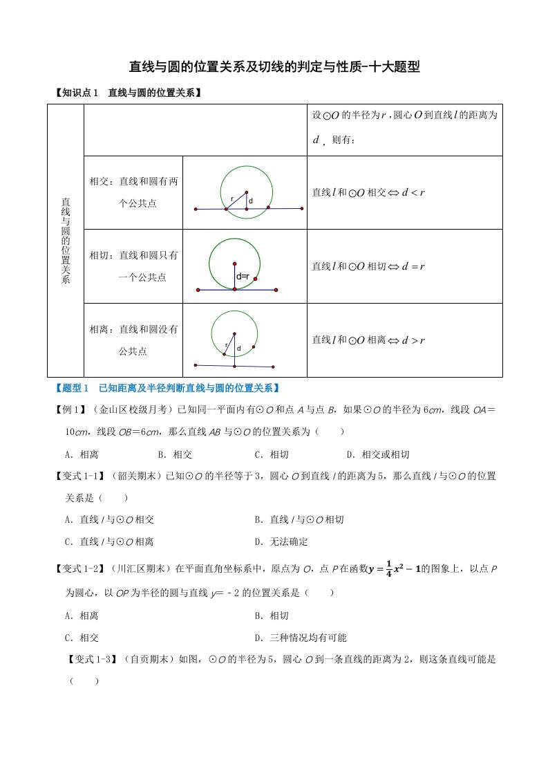 专项24-直线与圆的位置关系及切线的判定与性质-十大题型