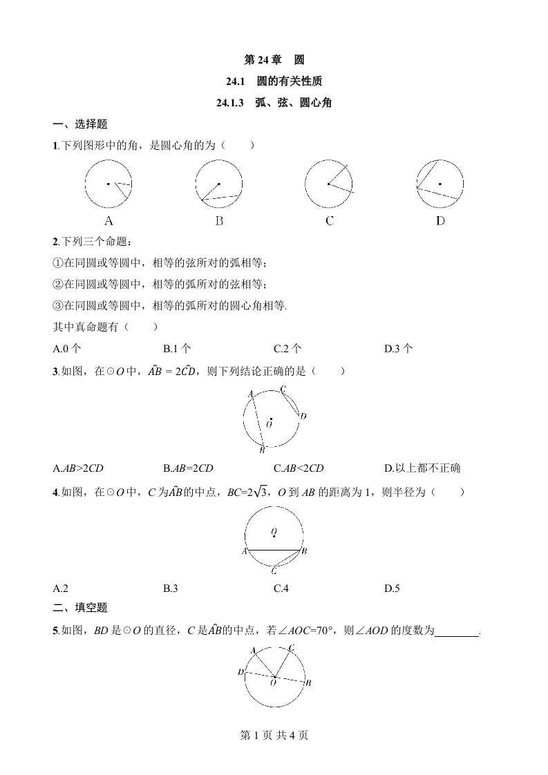 24.1.3 弧、弦、圆心角