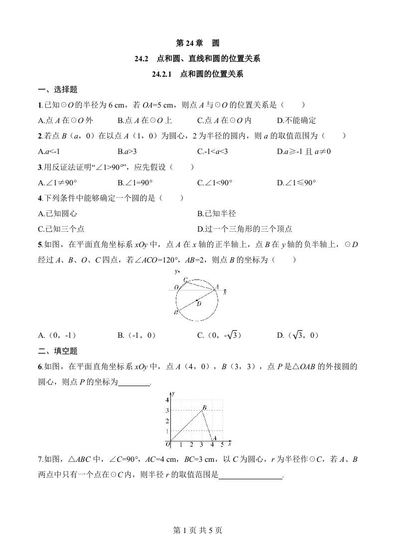 24.2.1 点和圆的位置关系