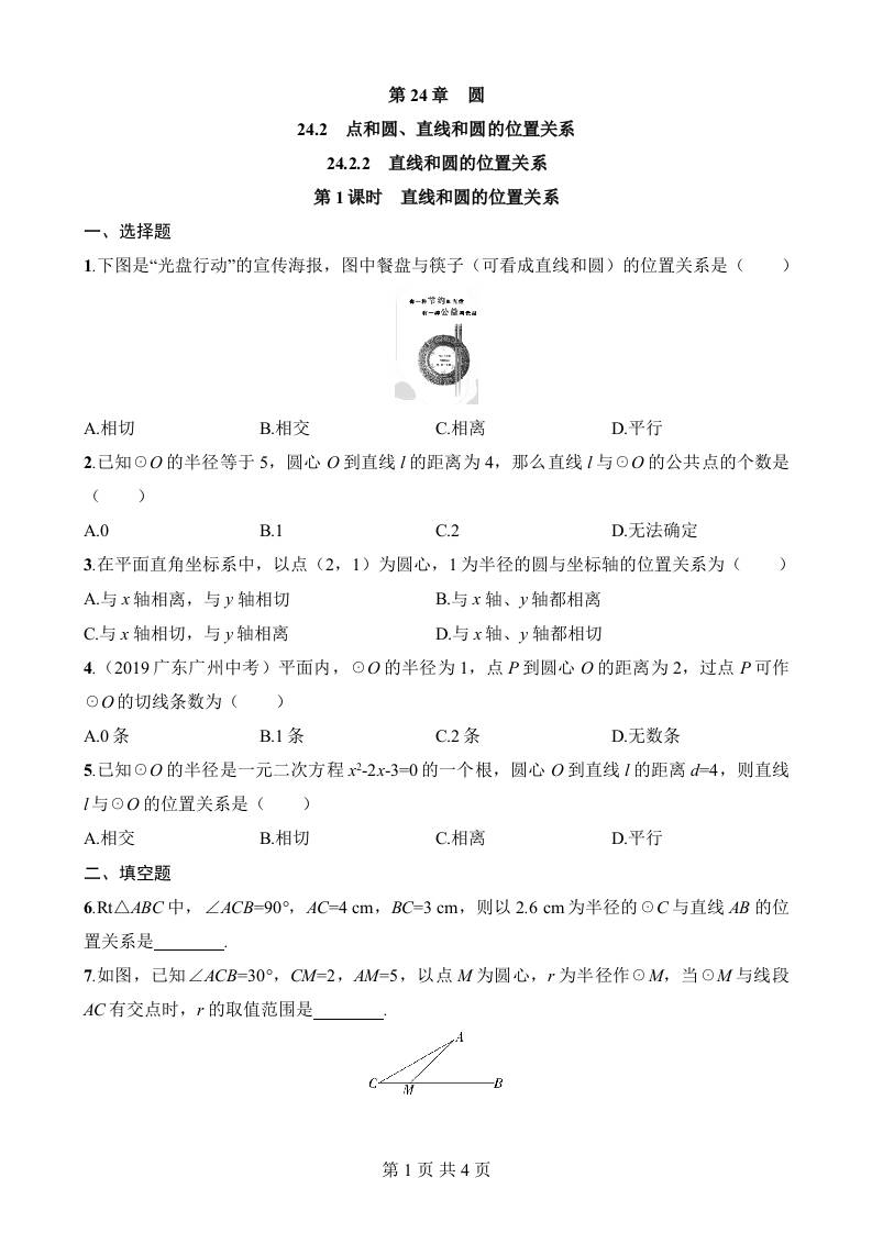 24.2.2.1 直线和圆的位置关系
