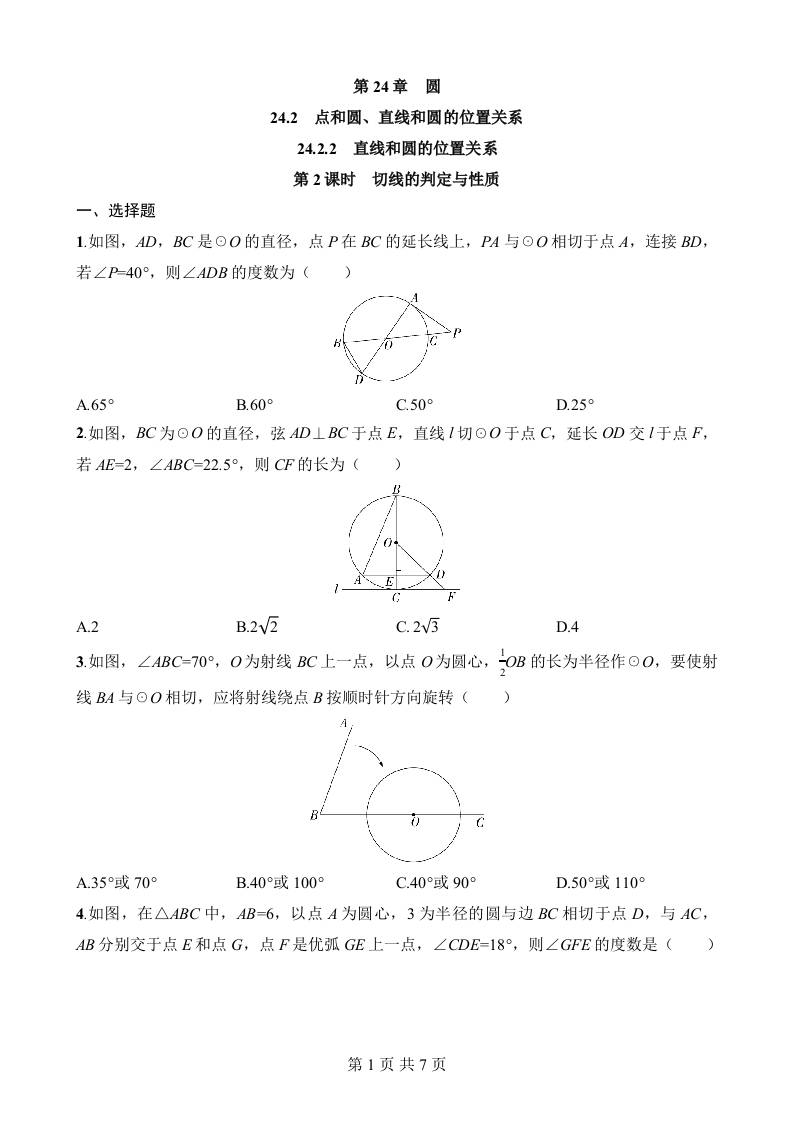 24.2.2.2 切线的判定与性质