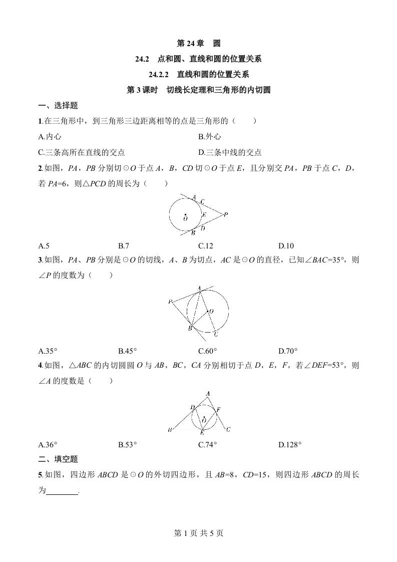 24.2.2.3 切线长定理和三角形的内切圆