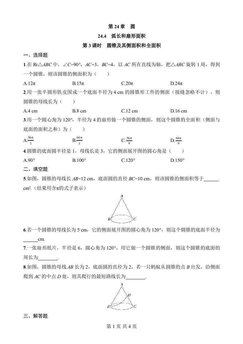 24.4.3 圆锥及其侧面积和全面积