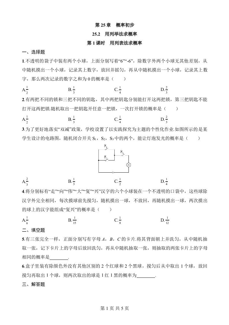 25.2.1 用列表法求概率