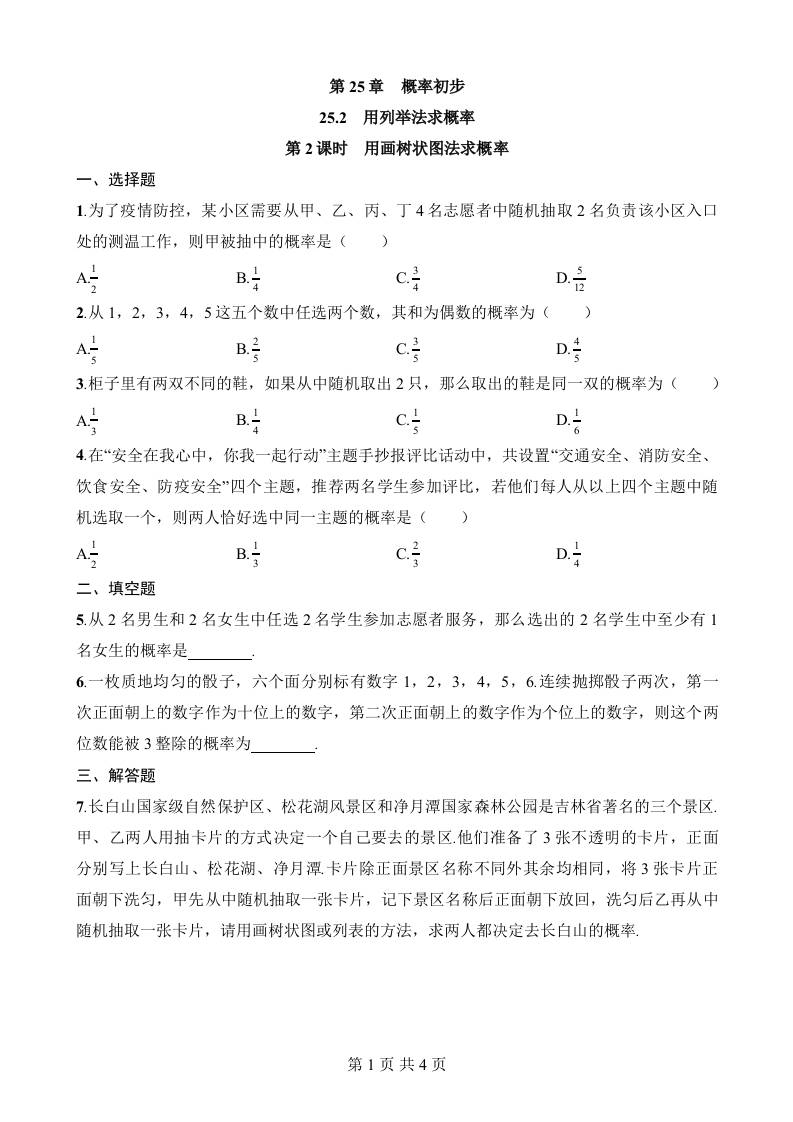 25.2.2 用画树状图法求概率