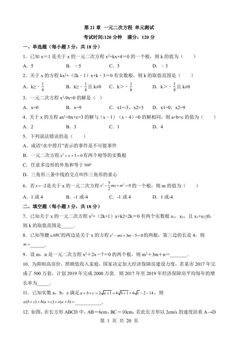 第21章 一元二次方程 单元测试