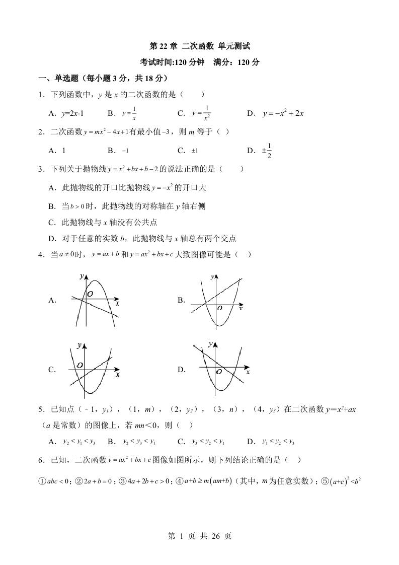 第22章 二次函数 单元测试