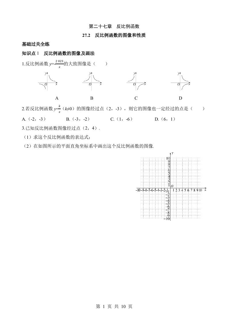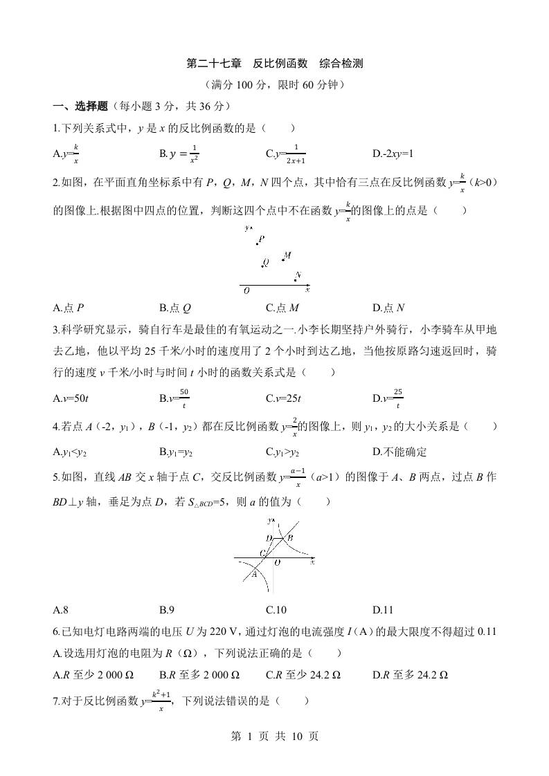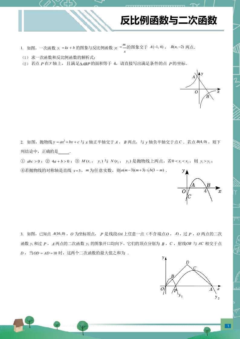第21章 反比例函数与二次函数【专项练习】沪科版数学九年级上册