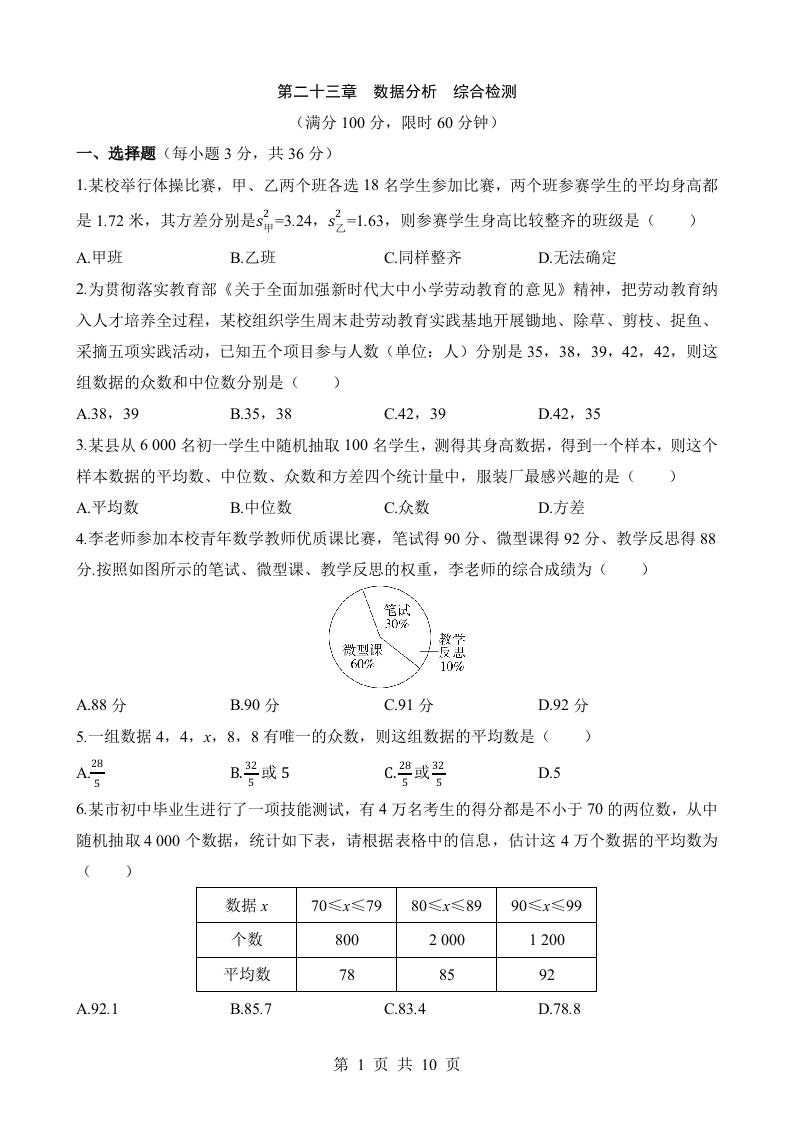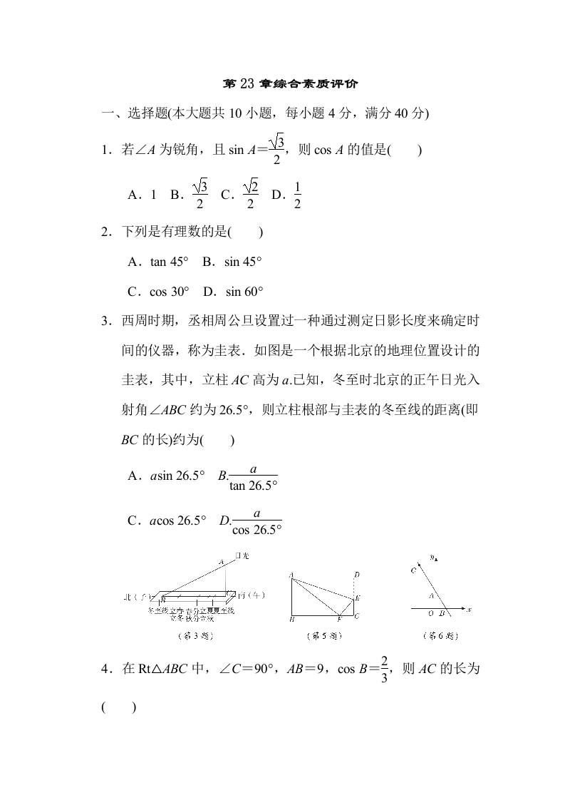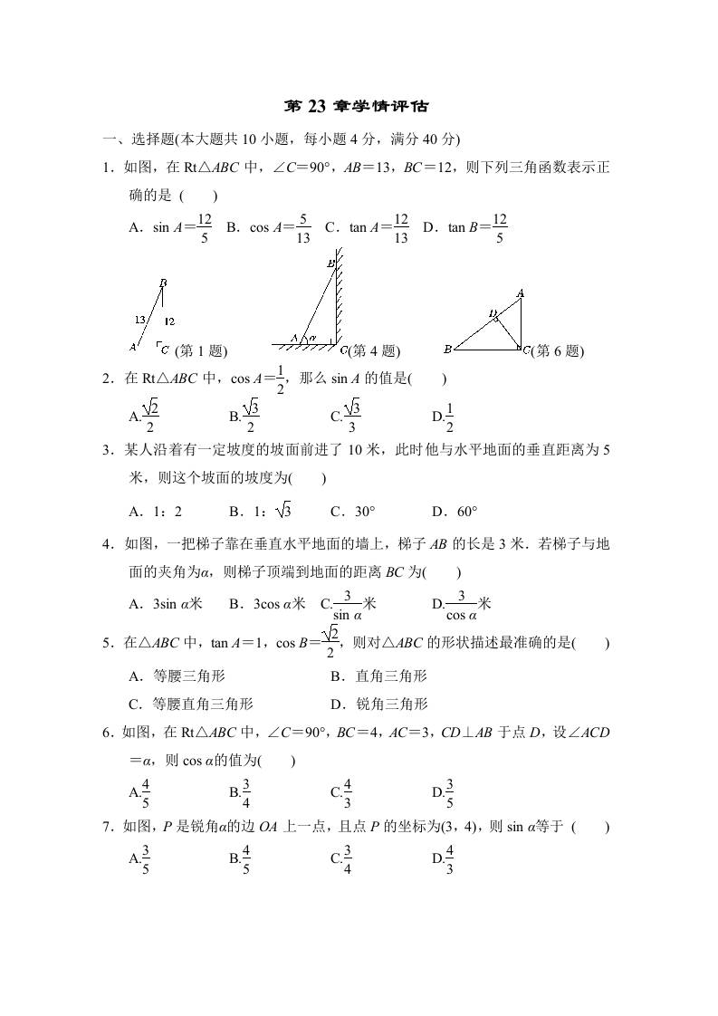 第23章解直角三角形 学情评估卷沪科版数学九年级上册