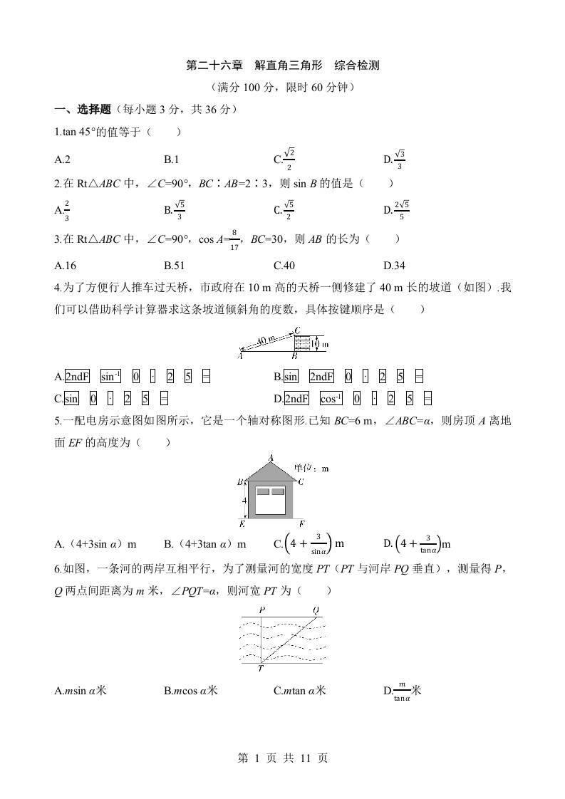 第23章解直角三角形 单元测试-数学沪科版九年级上册