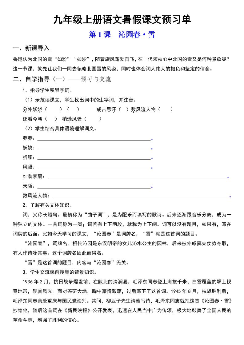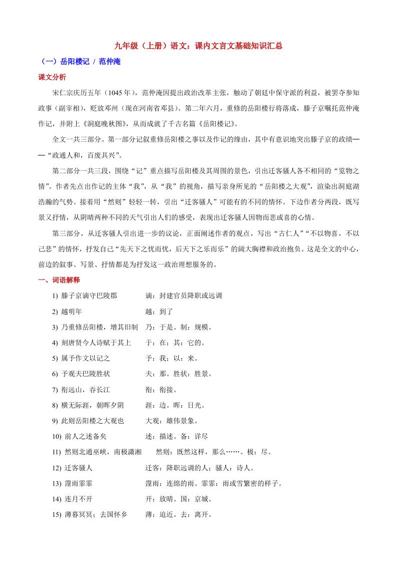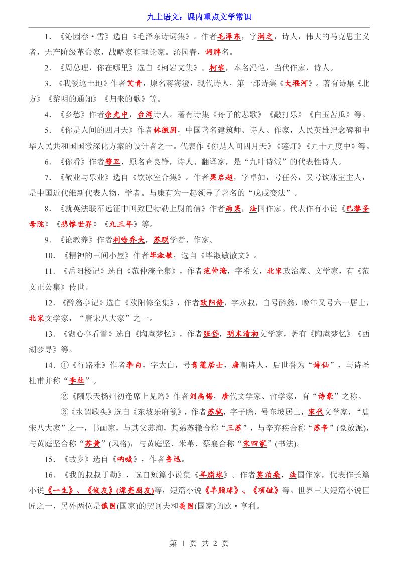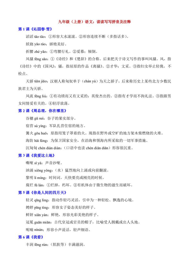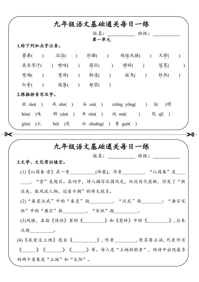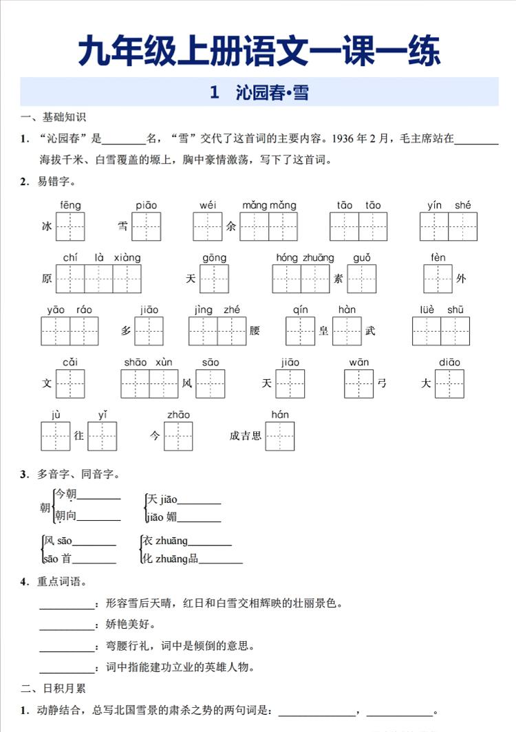 九上语文全册【古诗词鉴赏】(注释+译文+主题+写法)
