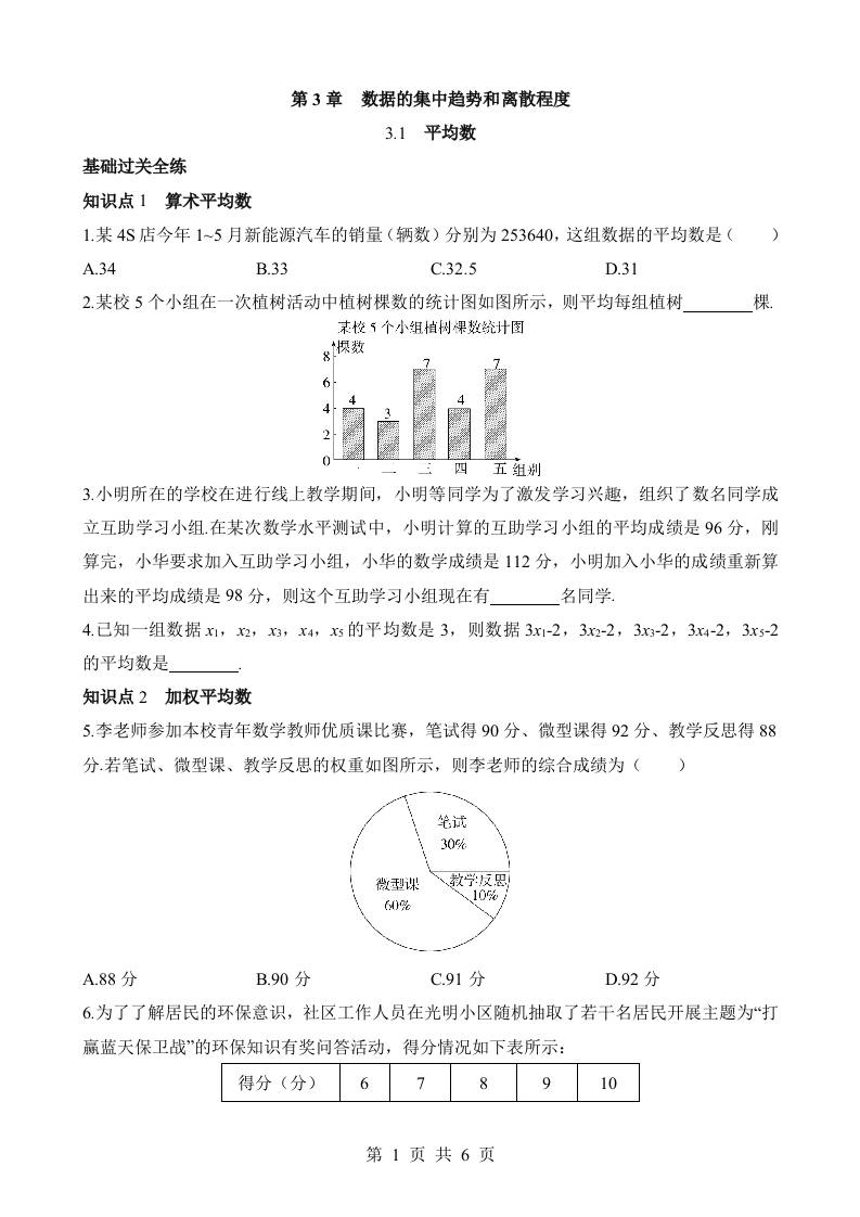 3.1 平均数 同步练习