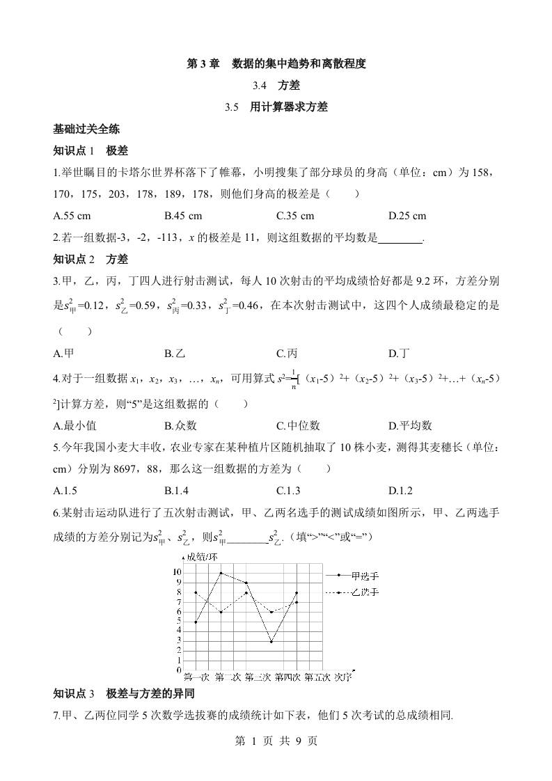 3.4 方差-3.5 用计算器求方差 同步练习