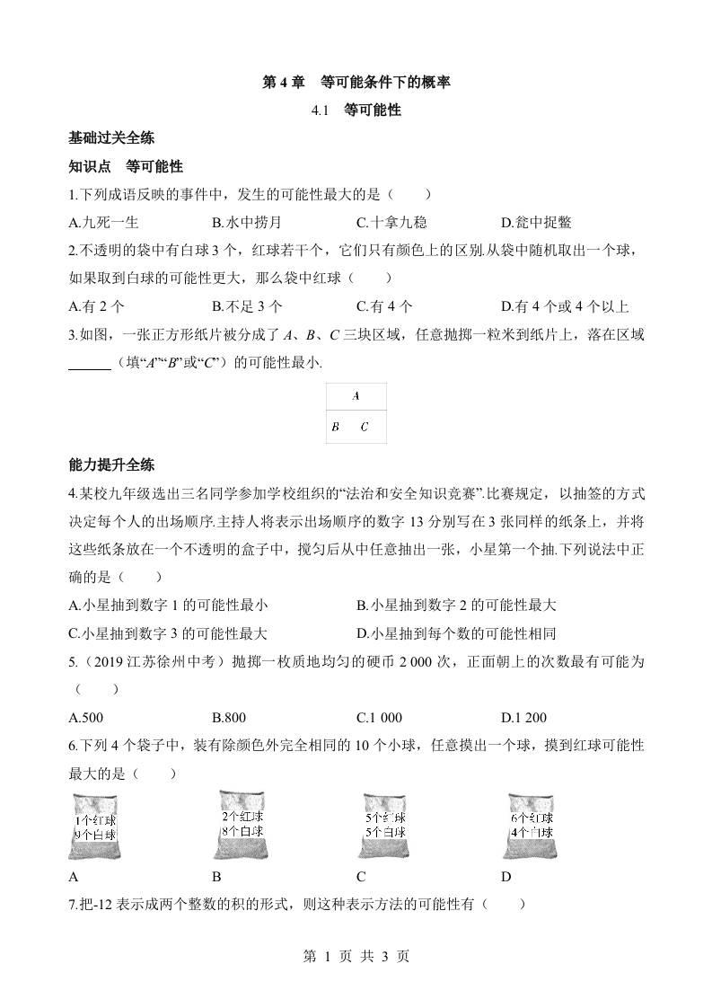 4.1 等可能性 同步练习