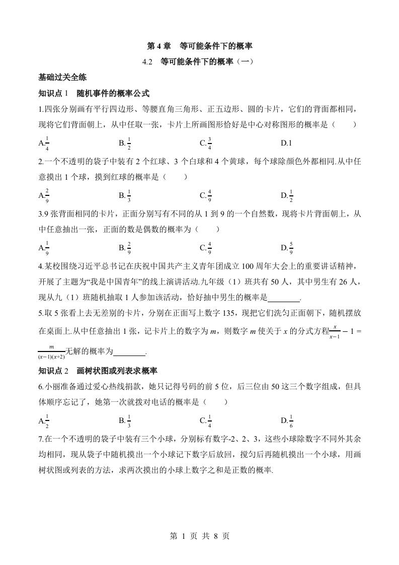 4.2 等可能条件下的概率(一) 同步练习