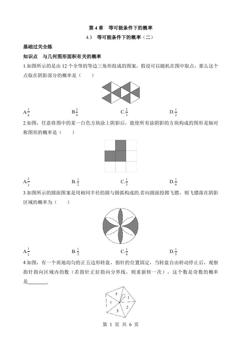 4.3 等可能条件下的概率(二) 同步练习