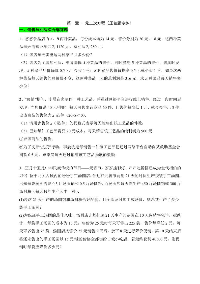 第一章 一元二次方程(2类压轴题专练)