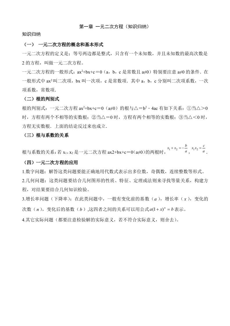 第一章 一元二次方程(4个知识归纳)