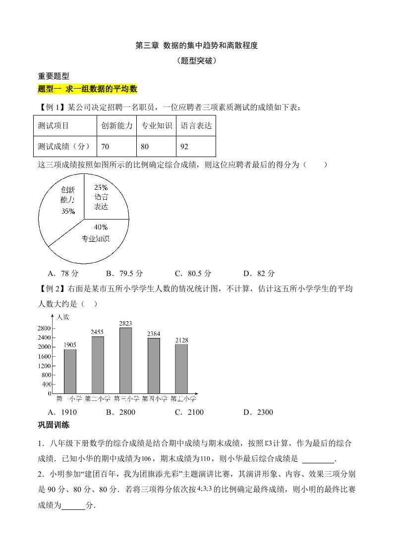第三章 数据的集中趋势和离散程度(4类题型突破)