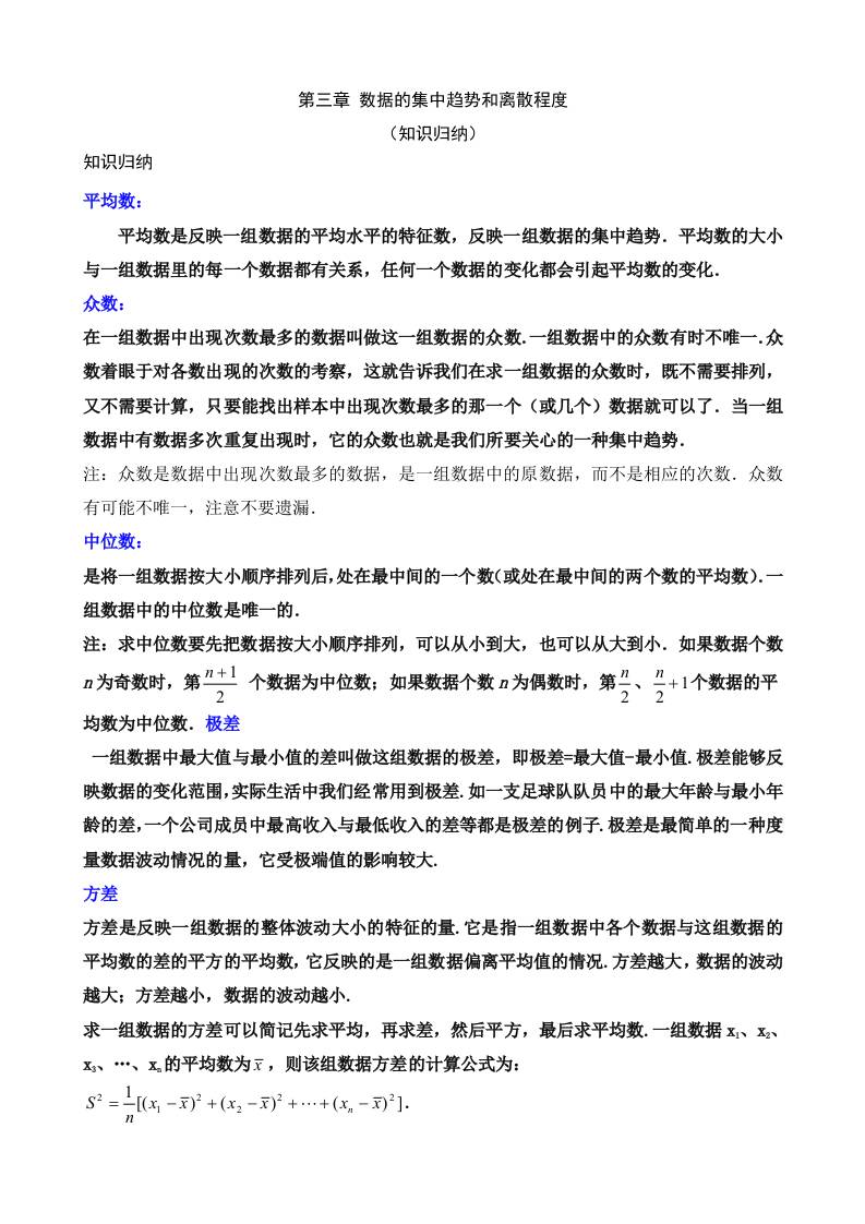 第三章 数据的集中趋势和离散程度(5个知识归纳)