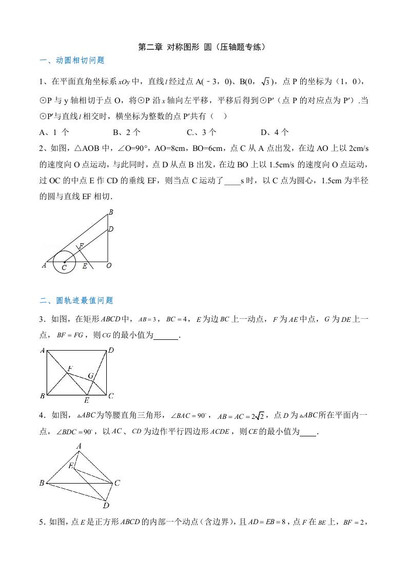 第二章 对称图形—圆(3类压轴题专练)